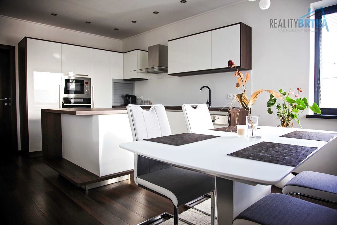 - OBÝVAČKA: Pohodová atmosféra vďaka krbu, prepojená s modernou kuchyňou.