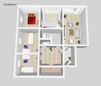 Dispozícia bytu: predsieň, obývacia izba s balkónom, kuchyňa, kúpelňa, samostatná toaleta, v rolldori na chodbe sa ukrýva vstup do priestrannej komory a 3x spálňa.